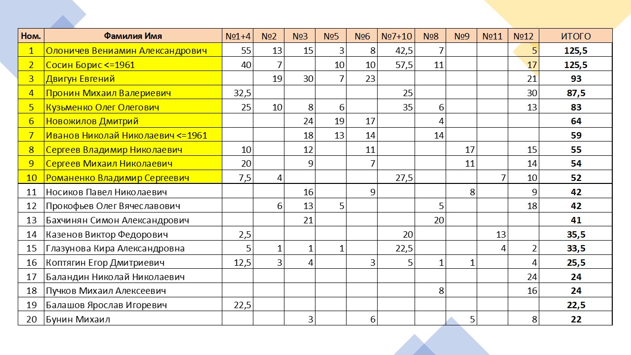 - 1 место: Баллы = N – m + 10, где m – занятое место с учетом дополнительных показателей